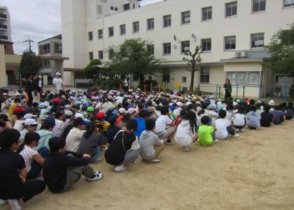 「おはしもて」の約束をしっかりと守って、静かにすばやく運動場に集まることができました。「おはしもて」の意味は、家で尋ねてみてください。