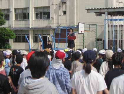 今朝の児童朝会での校長先生のお話は、「創立記念日」のお話でした。