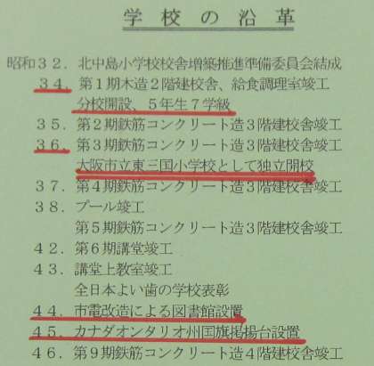 6月5日が「創立記念日」です。今年で、65周年になります。昭和34年に「北中島小学校分校」として始まり、昭和36年に大阪市立東三国小学校として開校したそうです。