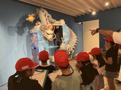 午前中は区の「アートラボ:アートとともだち」で美術鑑賞の仕方を教えていただきました。「絹谷幸二 天空美術館」で迫力ある美術品を間近に、鑑賞のポイントをいろいろお話していただきました。