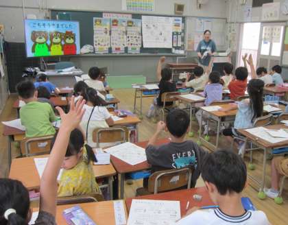 栄養教諭の先生に来ていただいて、1年生が栄養について学習しました。
