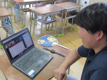 漢字の答え合わせをしたり、英語で好きな色を答えたり、家にある自慢の一品をプレゼンテーションしたりしていました。