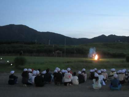 夕食後は、花火を見て、ナイトハイクをしました。
