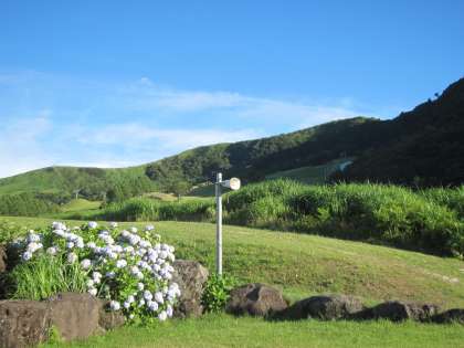 ハチ高原は快晴です。まだアジサイの花が見られます。