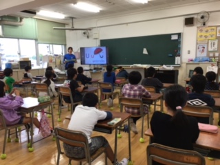 4年生の朝のフォニックス(英語音声指導)の時間です。