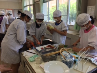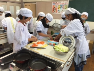 献立は、スクランブルエッグと三色野菜の炒めものです。