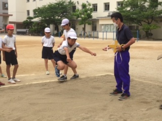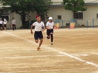6年生が、50m走と立ち幅跳びの測定を実施しました。