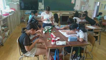写真は5年1組の「しゃてき」の準備風景です。