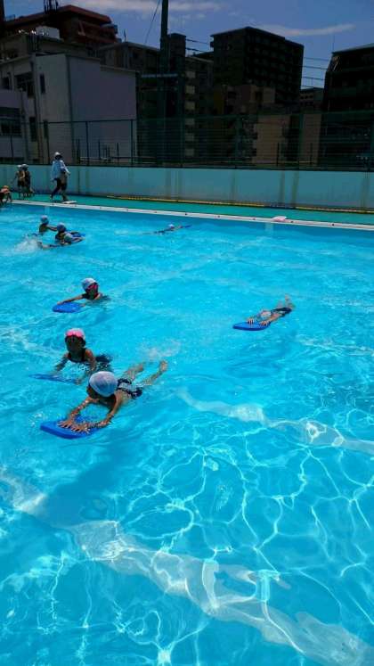 「シャワーでじゃんけん」「水の修行」「ばた足」「宝探し」「輪くぐり」の五つのコーナーに挑戦しました。とても上手でした。