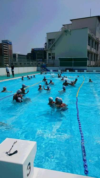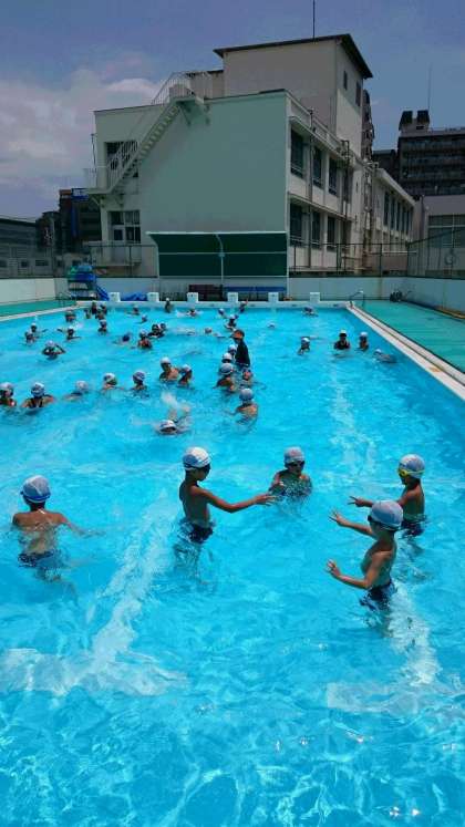 夏休み初日、プール開放で元気に水しぶきをあげています。