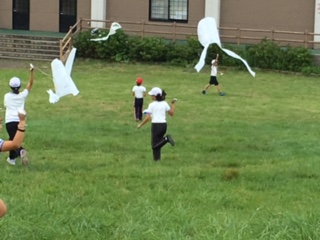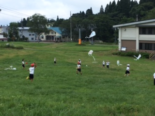午後の行事の二つ目は高原での凧揚げです。爽やかな風にのって凧は・・・