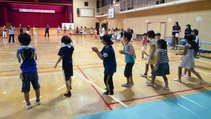 講師の先生や女性会の方にに教えていただき、軽快な曲に合わせて踊りました。