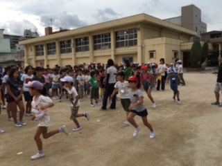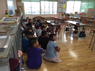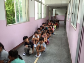 午前11時に強い地震が発生、地震による津波の可能性があり、安全な場所に避難する訓練を実施しました。みんな真剣に取り組んでいました。運動場から校舎の3階以上に避難するために学級ごとに走って校舎へ移動しました。3・4階では静かに廊下や教室内で2列に座り、待機しました。