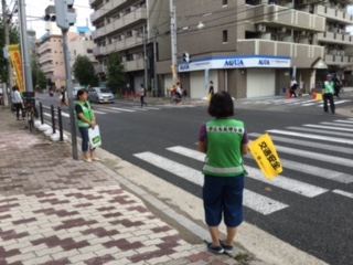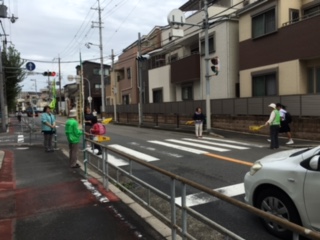 町会の振興会長様、防犯会の皆様、民生委員の皆様とPTAの皆様に通学路の安全を見守っていただいています。