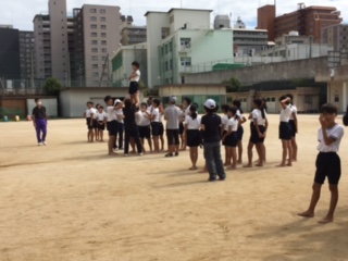 3・4年生、5・6年生それぞれ運動場で最後の練習を行いました。