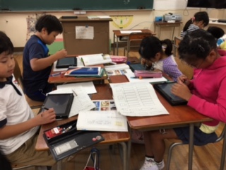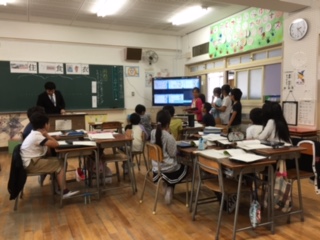5限目に、4年2組で高橋先生が「くらしの中の和と洋」を題材に研究授業を行いました。タブレットを活用した授業でした。