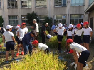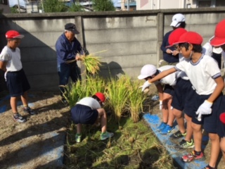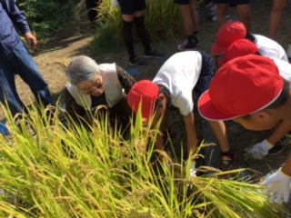 5年生が田植えをした稲が順調に育ち、本日稲刈りを実施しました。