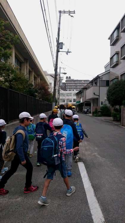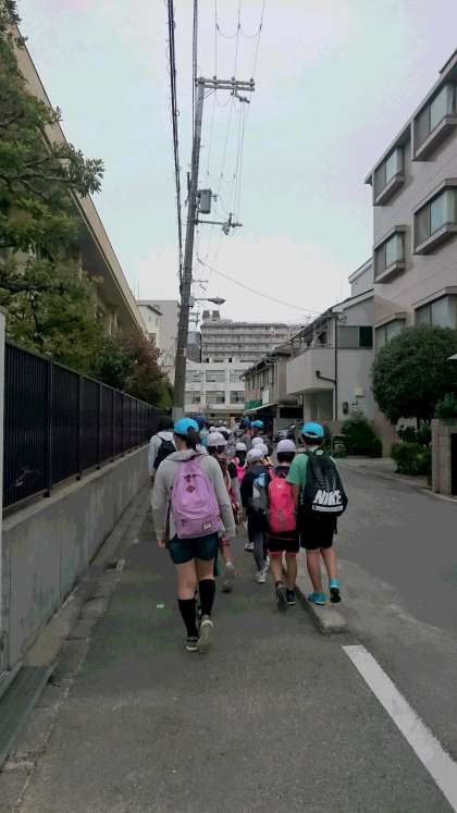 班の先頭と後ろは高学年で、班全体を見守ります。