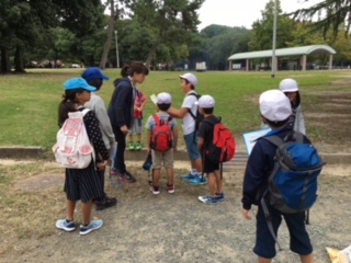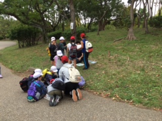 午前中はたてわり班で服部緑地をオリエンテーリングです。