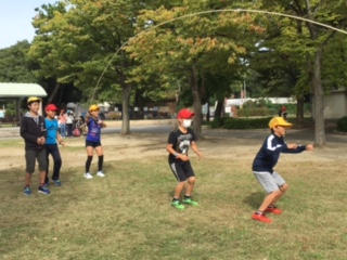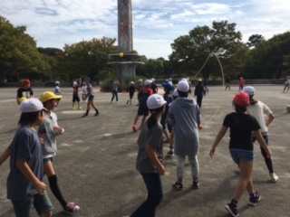 高学年は、グループごとに大縄跳び、バレーボール等をして楽しみました。