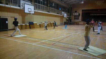 今日は雨天でしたが、講堂でバトミントンのシャトルを使っての打撃練習に励んでいました。
