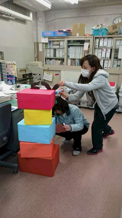 明日から作品展が始まります。各学年、平面作品と立体作品を展示しています。