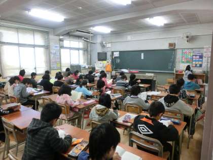 1月22日(水)先週の3年生の学年休業に続き、今日から1年2年の学級休業、5年の学年休業になりました。風邪やインフルエンザB型が流行っているので金曜日まで休みます。おかげで学校はさびしい状態です。今朝は読書タイムでしたが1年も2年も隣の教室にだれもいなのでいっそう寒く感じられます。早くみんなが元気になってほしいです。25日(土)は土曜授業です。2限が低学年、3限が高学年の授業参観になっています。はたして・・。