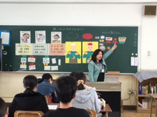 2時限目に6年1組で加島小学校の江見栄養教職員様より「バランスの取れた食事について」また、2時限目に5年1組、3時限目に5年2組で新東三国小学校の岩井栄養教職員様より「朝ごはんの大切さを知ろう」をテーマにそれぞれご指導いただきました。