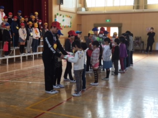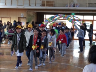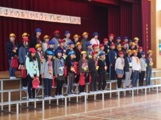 土曜授業の中で、全校児童で「6年生を送る会」を行いました。在校生の歌、ゲーム、プレゼント渡し、送る言葉、お別れの言葉、6年生からのプレゼントがありました。
