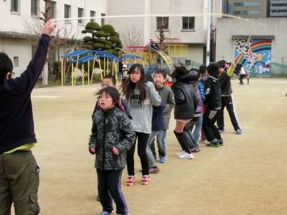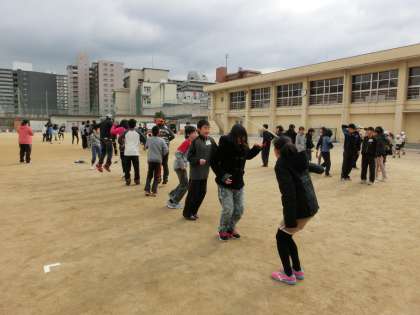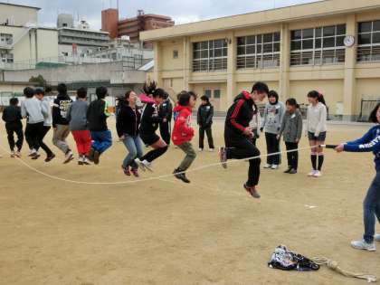 2月6日(木)業間の15分休み時間に5,6年生の縄跳び大会がありました。今まで練習してきたので上手に飛べるはずですが、なんせ今日は寒いのです。長縄でとぶ人数は10人。3回のチャレンジによる最高記録を比べます。さて、どのクラスが優勝するでしょうか。楽しみです。
