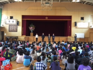 着任式後、始業式を行いました。校長先生から今年も「あいさつをすること」「人の話をしっかり聞くこと」「ルール(規則)を守ること」の話がありました。1年間ご協力のほどよろしくお願いいたします。