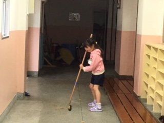 毎日歯みがきタイムの後、全校で清掃活動をしています。学習には環境を整えることが大切です。これからも学校施設をきれいにしていきたいです。上記は職員室前と保健室前です。