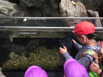 ぐずついた天候の中、3・4年生が港区の海遊館とその周辺へ遠足に行きました。海遊館内は、各班ごとに1台のタブレットを活用して魚等を撮影しました。これからの授業で今日学んだことを詳しく学習する予定です。