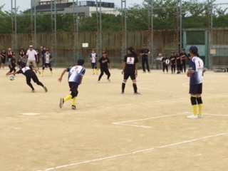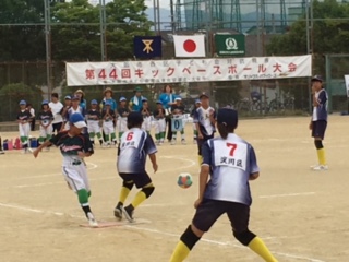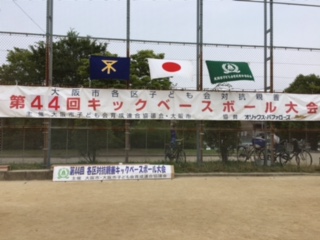 7月10日(日)第44回大阪市各区子ども会親善キックベースボール大会が生野区の巽東公園で行われました。淀川区の代表として出場し、第3位となりました。第1試合は、西淀川区のチームと、第2回戦は鶴見区のチームと対戦しました。準決勝は港区のチームと対戦し、健闘しましたが惜しくも敗戦しました。どの試合もチーム一丸となって試合に臨んでいました。上記は、第1試合の西淀川区区との試合、第2回戦の鶴見区のチームとの試合の様子です。