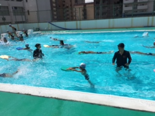 1学期最後の水泳の授業でした。クロール習得に向けた前段階の練習を行いました。ビート板を使用したり、25mを何回も泳ぐ練習をしました。