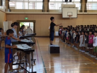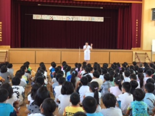1学期の終業式を行いました。校長先生の1学期のまとめのお話、本田先生からは夏休み中の諸注意がありました。最後に器楽クラブの演奏で校歌を歌いました。これから長い夏休みに入ります。子どもたちはおもにお家や地域で生活をします。規則正しく、安全な生活を願っています。見守りをよろしくお願いいたします。