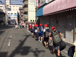 出発式後バス乗車に向けて学校を出て、8時前にハチ高原へ向けて出発しました。早朝よりお見送りに来ていただきました皆様ありがとうございました。