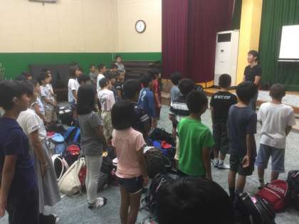 閉舎式を行いました。司会は2組村井さんで、教頭先生のあいさつ、児童あいさつ、宿舎の方のあいさつ、本田先生からの諸注意がありました。お世話になりましたグリーンロッジの皆さん、ありがとうございました。3日間ハチ高原の自然を満喫できました。