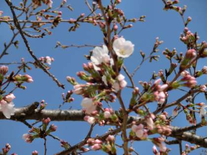 3月28日(金)春休みです。校庭の桜がぼちぼち開花し始めました。入学式までもってほしいです。桜だけでなく、スイセンもチューリップもパンジーも咲いています。寒い冬を乗り越えて見事に咲いてくれています。25年度もあと少し。学校も26年度の準備中です。31日(月)は離任式をします。