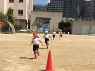 2年生は個人走の練習を行いました。学年の先生の説明・指示を聞いて入場から退場までの練習と初めて各レースごとに走りました。