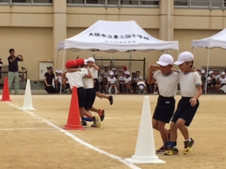 上記より、2年生「ゴールをめざして、ダッシュ!」、3年生「息を合わせて 1、2!1、2!」、5年生「RISING RUN」です。