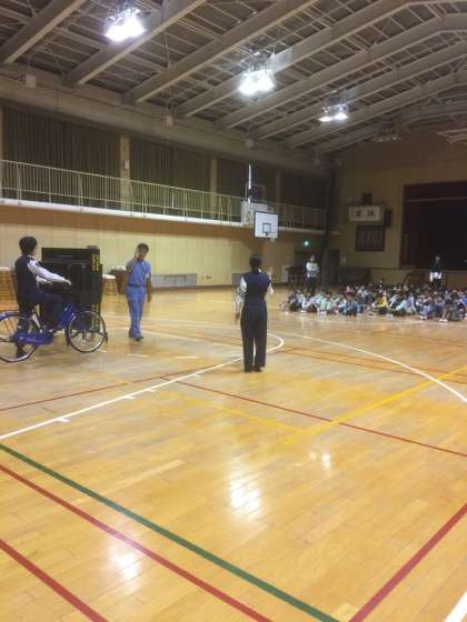 淀川警察署と淀川区役所の「SAFETYよどがわ」の方にお越しいただいて、正しい歩行の仕方・正しい自転車の乗り方を教えていただきました。