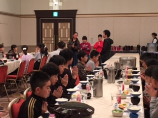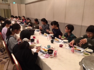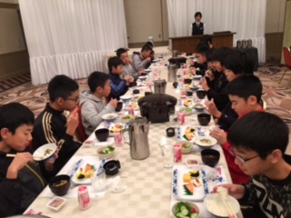 朝の会を終え、荷物整理と部屋の清掃を済ませた後、朝食をいただいています。