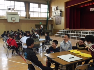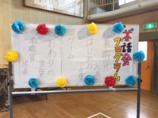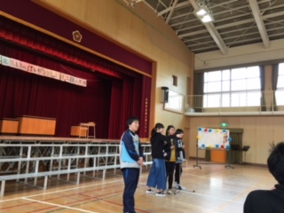 14時45分から、6年生が教職員を招待して茶話会を開きました。すべて6年生の企画・進行です。事前に、教職員一人ひとりに招待状を渡してくれました。プログラム順に始まり、前半はみんなでゲームをして盛りあがりました。
