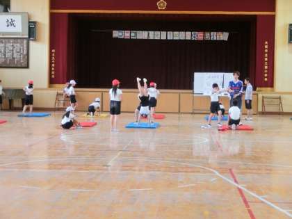 6月6日(金)昨日は第54回創立記念日でした。今日から55年目のスタートです。歴史を積み重ね、よりすばらしい学校にしていきたいです。そんな出発の日にふさわしいような子どもの様子はないか、頑張っている子どもがいっぱいいないかなあと思っていたら、いました。教室で真剣に学習に打ち込んでいたり、墨で汚れながら毛筆書写をしたりしている子どもの姿が見られました。体育館では、5年生がマットの上で倒立の練習をしていました。腕を伸ばして、足を振り上げて、目を補助者の足を見て・・なかなか上手にできませんでしたが、担任の指導と励ましをききながら、何回も練習していると・・「先生、できた!」のうれしそうな声がいくつも聞こえてきました。できた、わかったという子どものうれしそうな声が聴けるのは本当にいいものです。そんな声をこれからもいっぱい聞こえるようにしていきたいです。では、よい週末を。