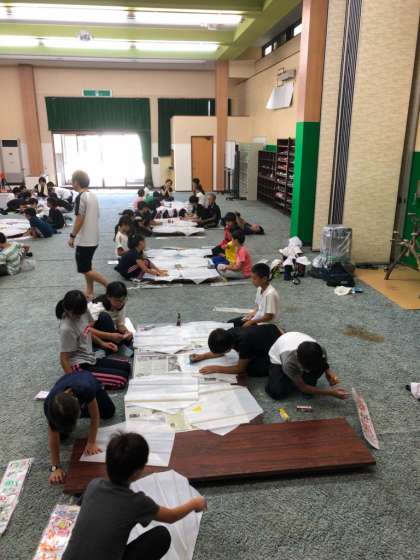 鉢伏高原で揚げる凧を作っています。
