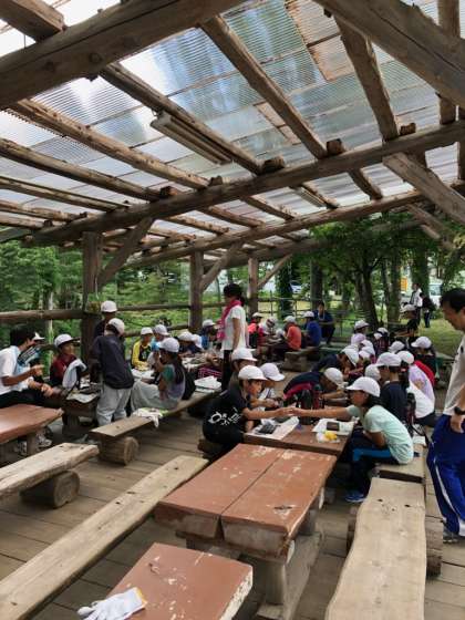 「林間指導の楽しい思い出を形に残そう」と、焼き板作りに取り組んでいます。