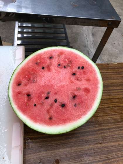 焼き板作りの後、おやつに西瓜をいただきました。