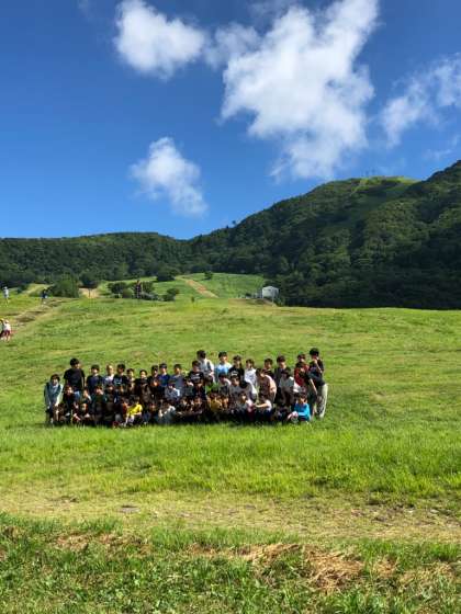 雄大な鉢伏高原をバックに、林間学習最後の全体記念撮影をしました。