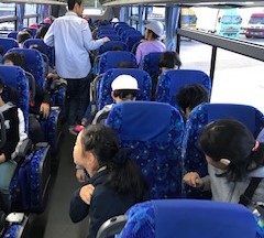6年生を乗せたバスは、9時20分頃にトイレ休憩のため草津PAに到着しました。バス酔いをする子もなく、車内で元気に過ごしているようです。